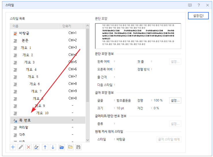 2. 모양대로 꼬리말이 만들어지고 쪽 번호가 들어감.