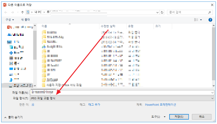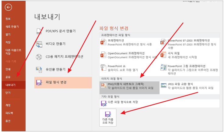 3. PNG 또는 JPEG 클릭 후 [다른 이름으로 저장] 클릭.