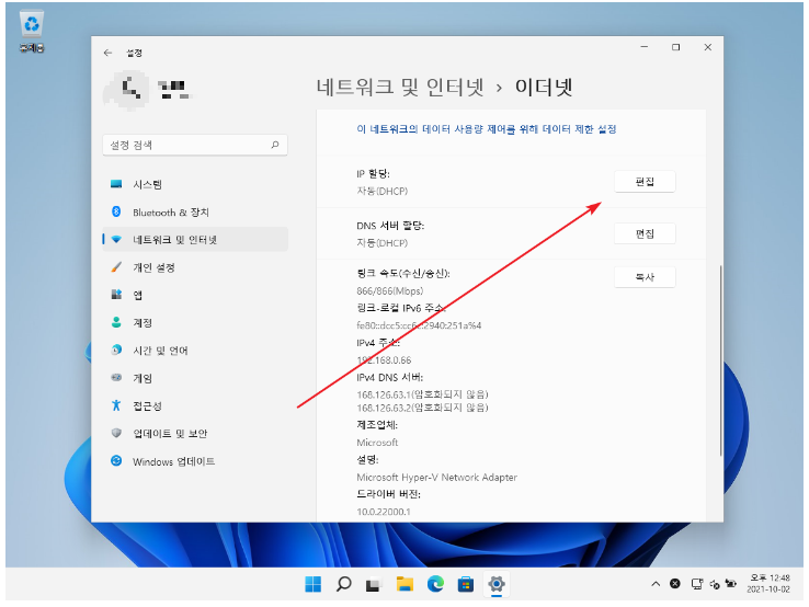 4. [IP 할당]의 [편집]을 클릭.