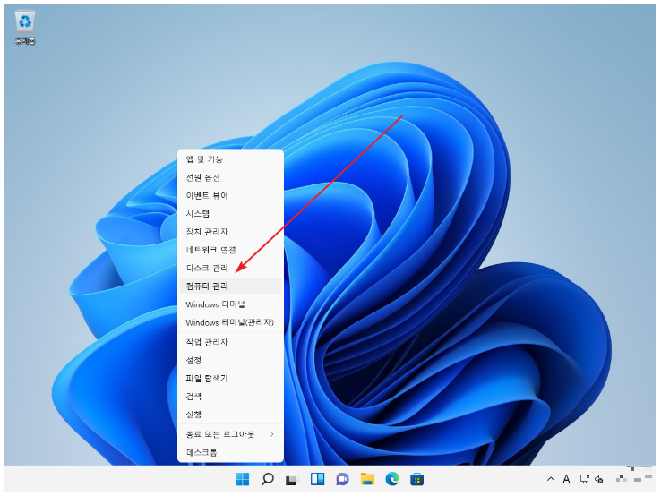 1. 시작 버튼에 마우스 올리고 우클릭.