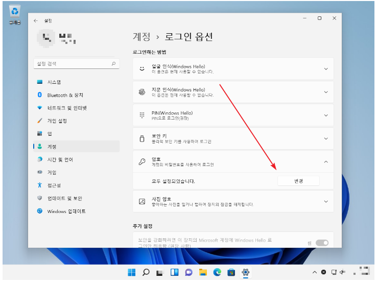 2. [암호 변경] 클릭.