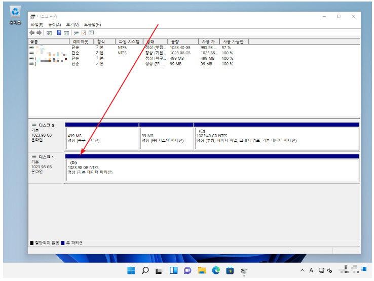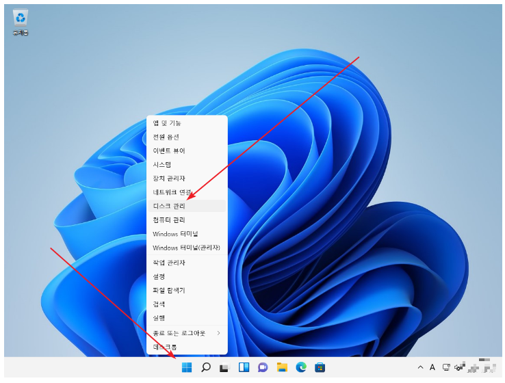 3. [디스크 관리]를 클릭.
