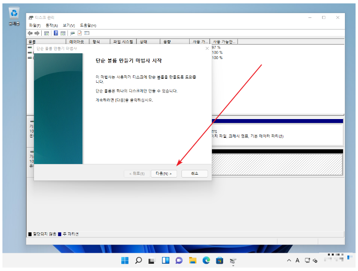 2. [새 단순 볼륨]을 클릭.