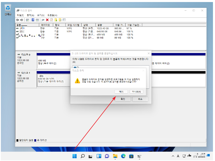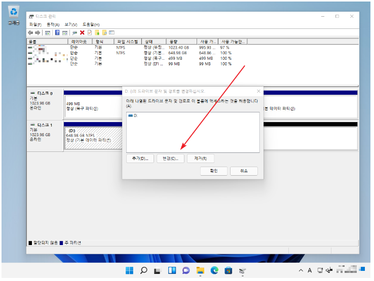 드라이브 문자 변경하는 법