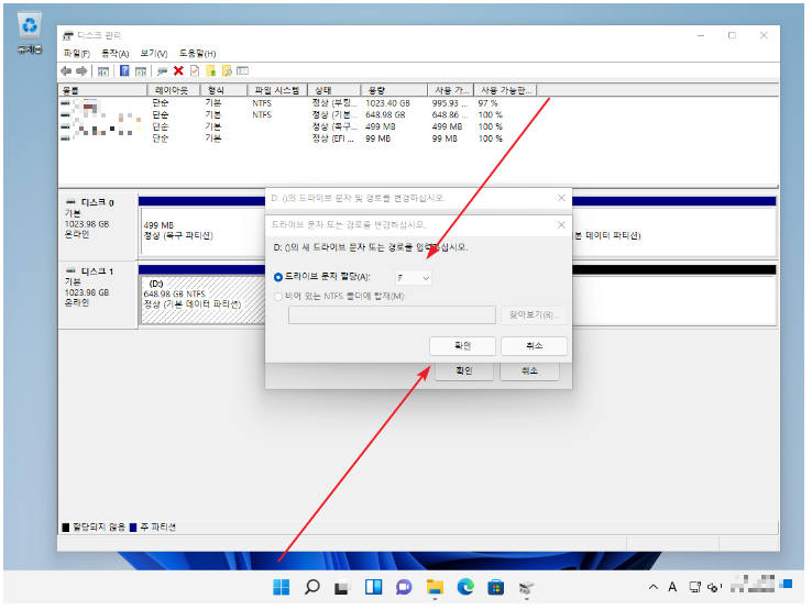 4. 드라이브 문자를 선택 후 [확인] 클릭.