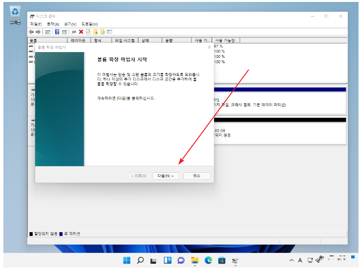 3. 볼륨 확장 마법사가 시작.