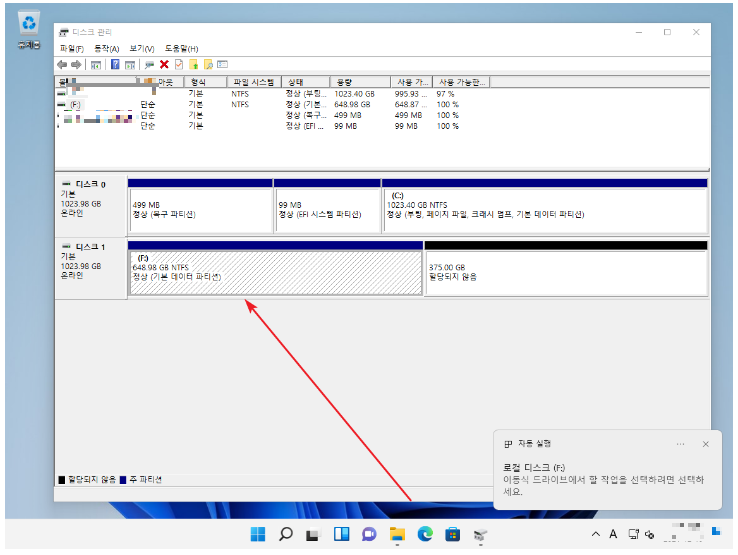 1. 디스크를 연결 후 PC 부팅.