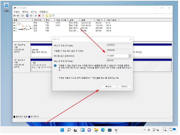 3. 축소할 크기를 정한 후 [축소] 클릭.