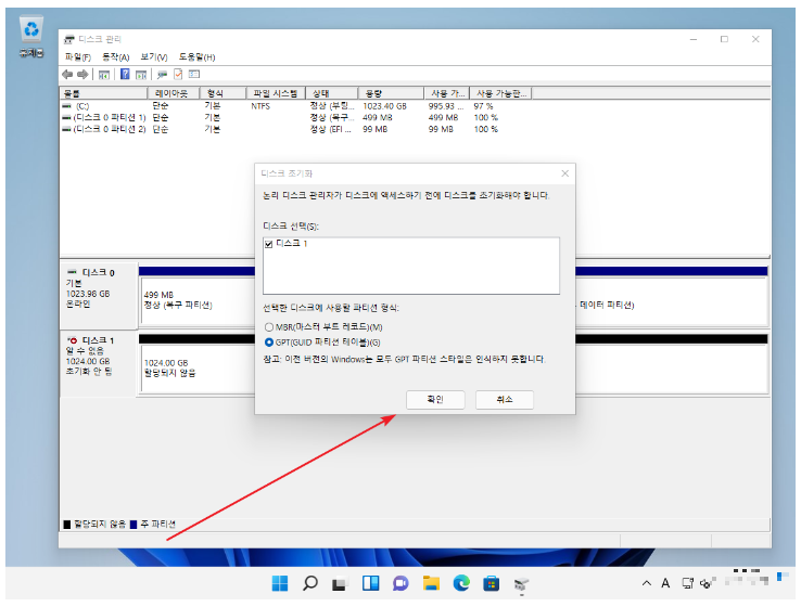 (특수한 상황이 아니라면 GPT를 선택 후 [확인] 클릭.)