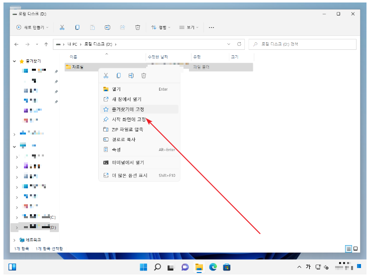 1. 즐겨찾기에 추가하고싶은 폴더를 선택 후 우클릭.