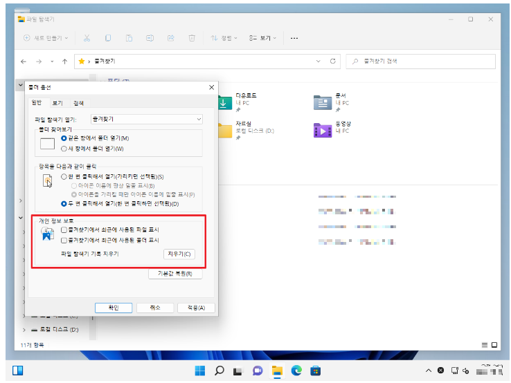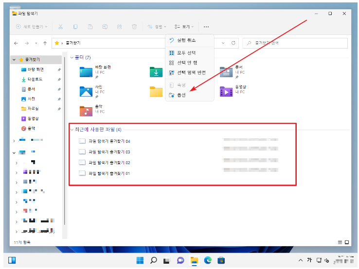 파일 탐색기 즐겨찾기 최근에 사용한 파일 지우는 방법