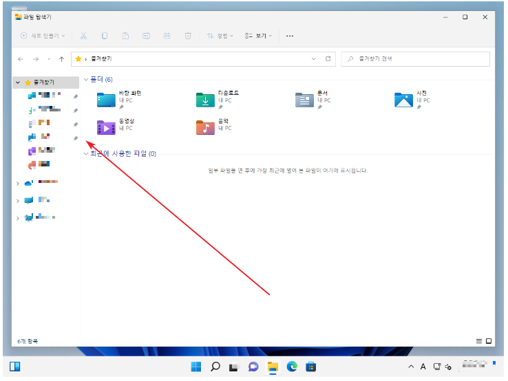 1. 즐겨찾기에 최근에 사용한 파일 목록이 나옴.