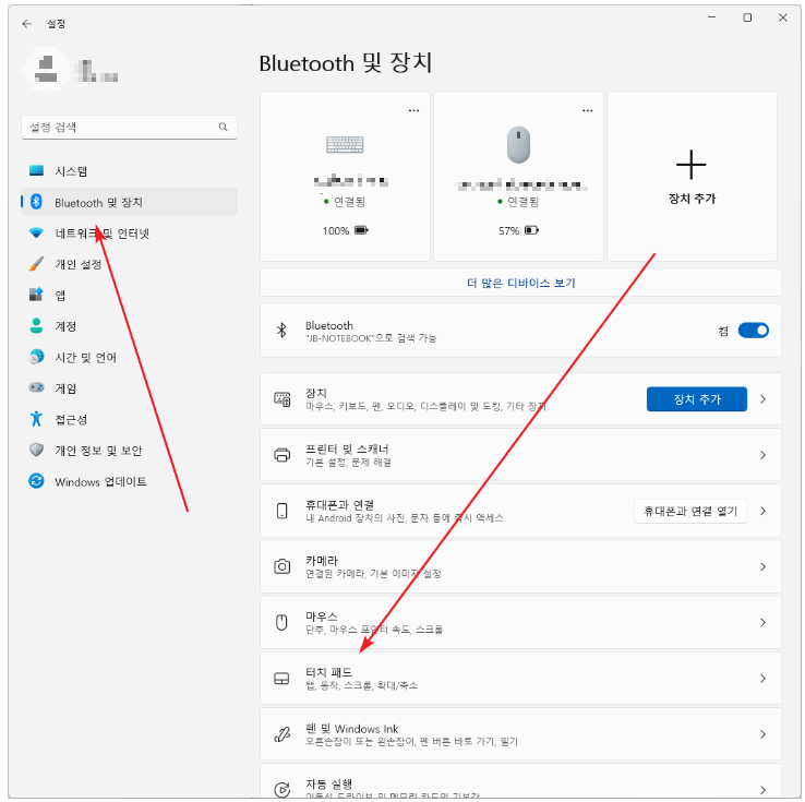 6. 마우스가 연결되면서 터치패드가 꺼지고 마우스가 연결 해제되면 터치패드가 활성화된다.